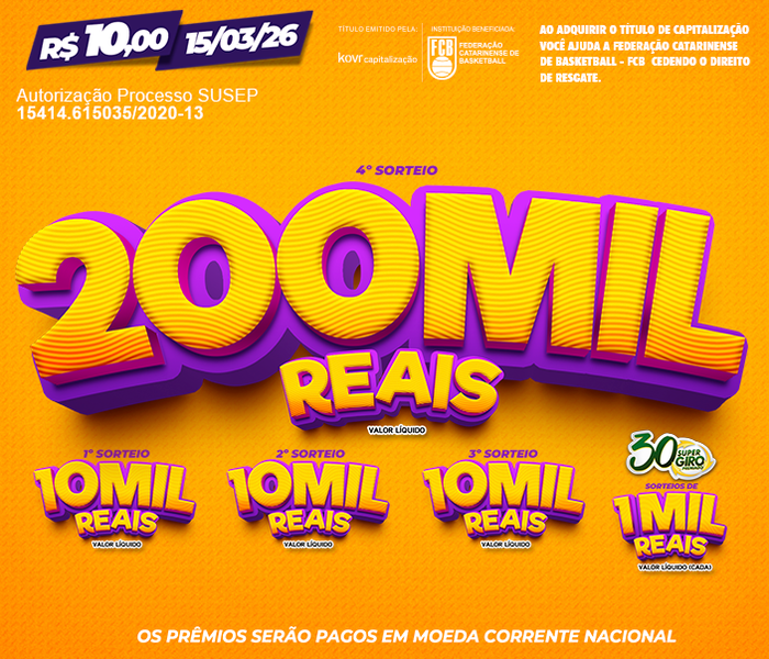 Ao comprar seu título e ceder o direito de resgate, você apoia a Federação Catarinense de Basketball e centenas de projetos sociais. Com o Trimania Sul, a FCB transforma esperança em ação oferecendo prêmios incríveis e promovendo o esporte por meio da FCB Social, filiada à Confederação Brasileira de Basketball (CBB).
